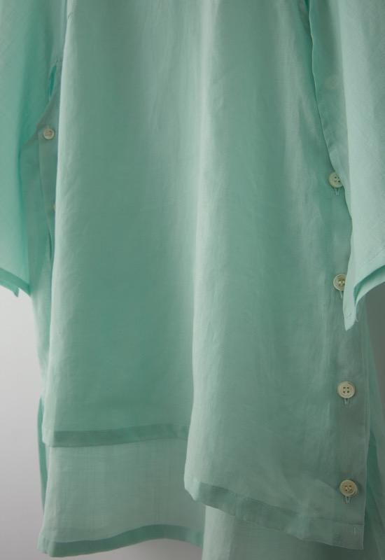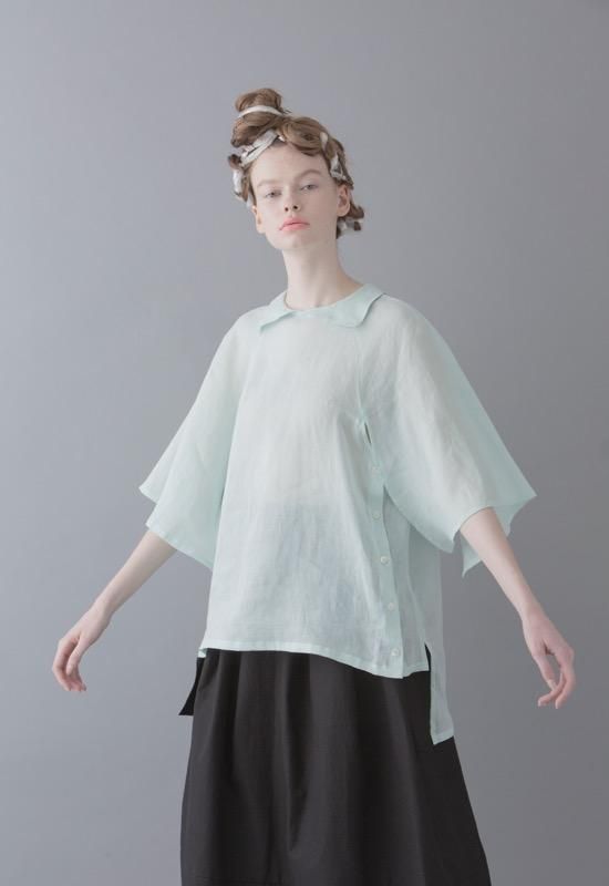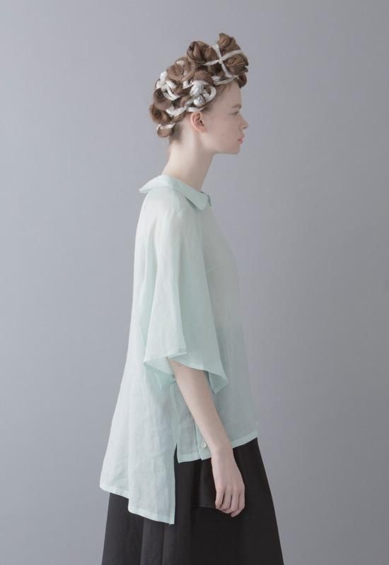 細いラミー糸を使用して、ラミー本来の硬さと節立ちを無くした、ふんわりと透明感のある素材です。