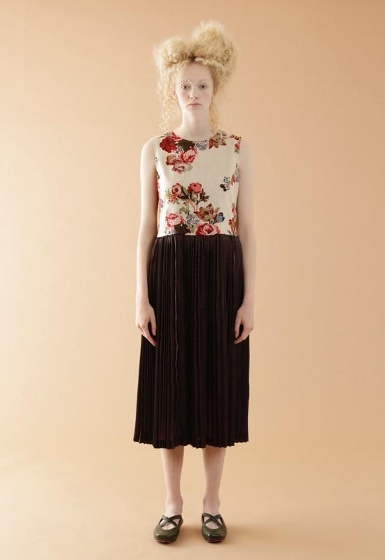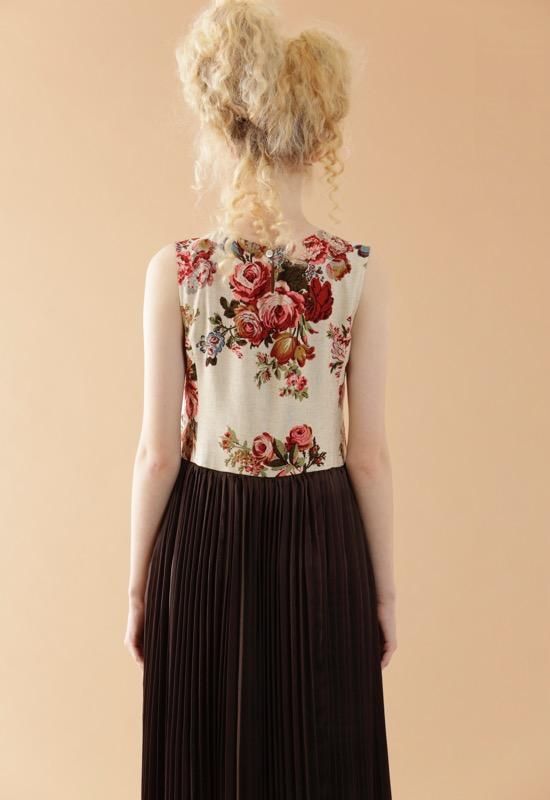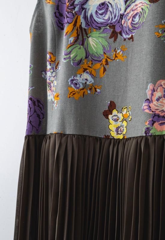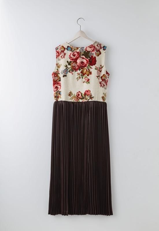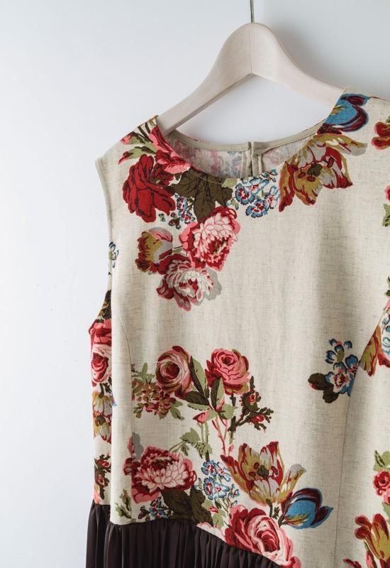レーヨンと麻でザックリと織られたキャンバス地を使用し、クラシックでロマンチックなムードを持つ花柄を手捺染でプリントしました。手捺染とは、熟練の職人さんが版画のように1枚ずつ版を重ねてハンドプリントする事です。麻色の上にプリントした事でヴィンテージ感を深めています。