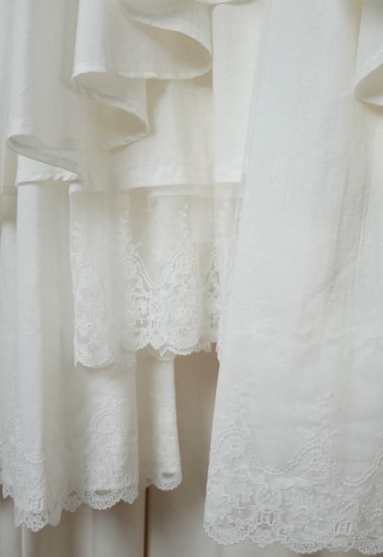 フロントのドレープや段違いになったレース使いなど存在感の高い1枚です。