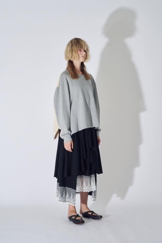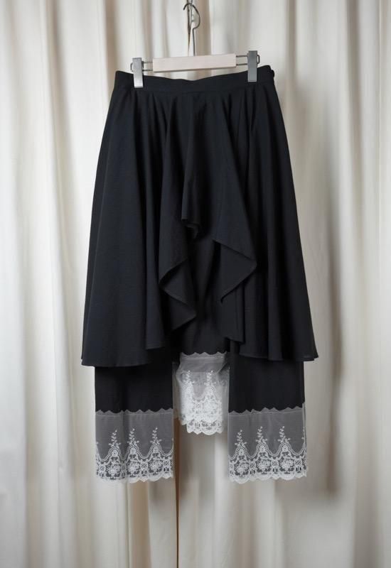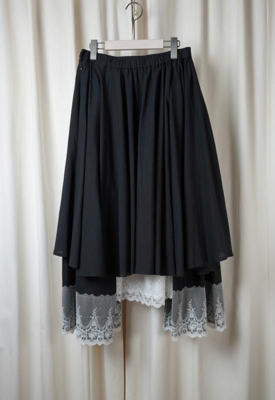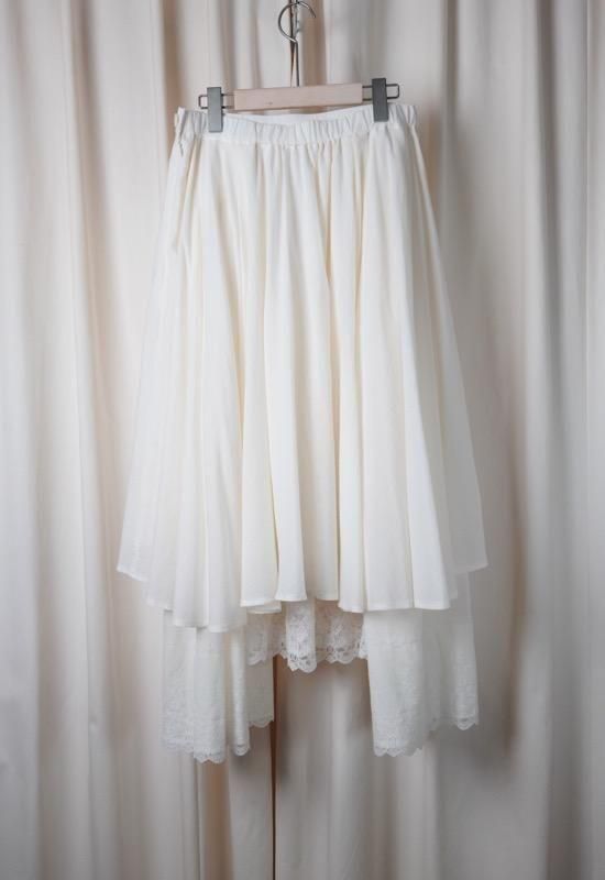 フロントのドレープや段違いになったレース使いなど存在感の高いスカートです。