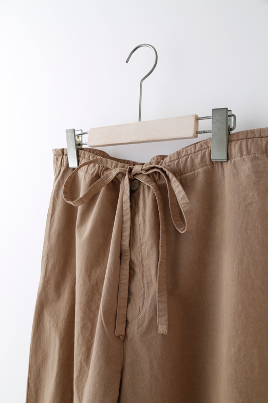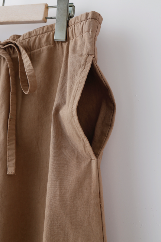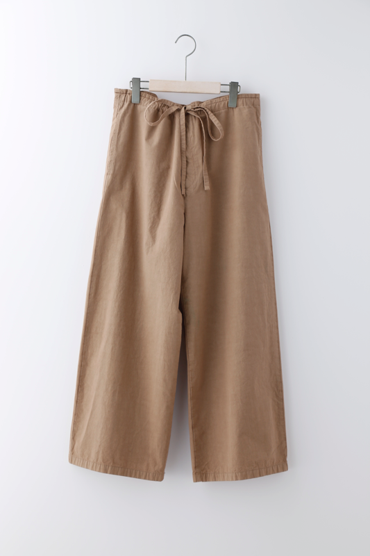 製品染めを施し、ナチュラルな風合いを持つ肌触り良いパンツを作りました。