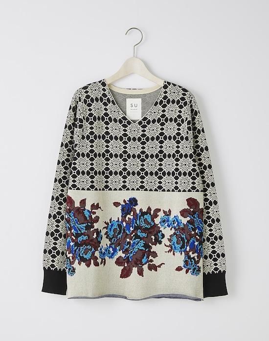 jacquard flower knit pullover
