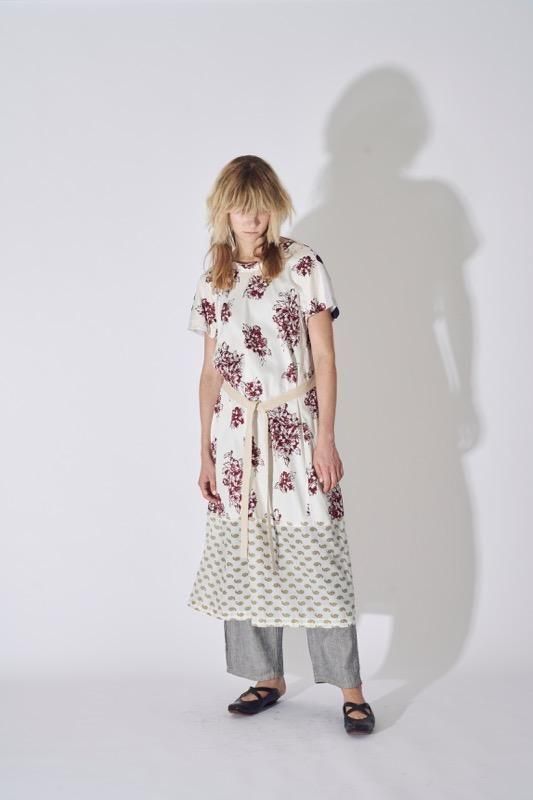 ドライで涼しげな綿ガーゼと綿サテンに手捺染で独特なバランスの水玉柄と花柄をプリントし、インド綿には小花のペイズリー模様をプリントしました。和風と洋風、エスニックを混ぜたエキゾティックなムードを出したワンピースです。