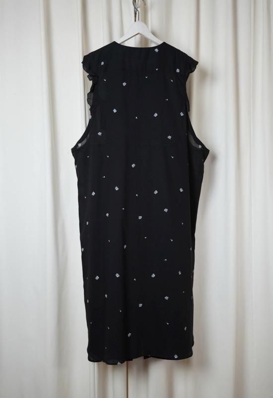 オーガニックコットン混の糸を使用してエアリーなアムンゼン素材を作りました。熟練の職人さんが版画のように生地にプリントする手捺染という手法でクラシックな小花の柄を顔料プリントしました。透明感のある優しい風合いを持つ素材で、ホワイトとブラックで小花の柄が異なります。